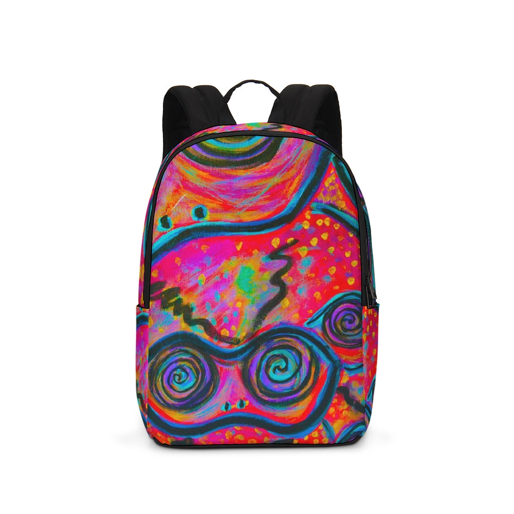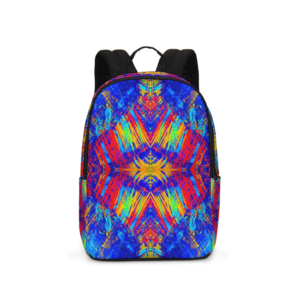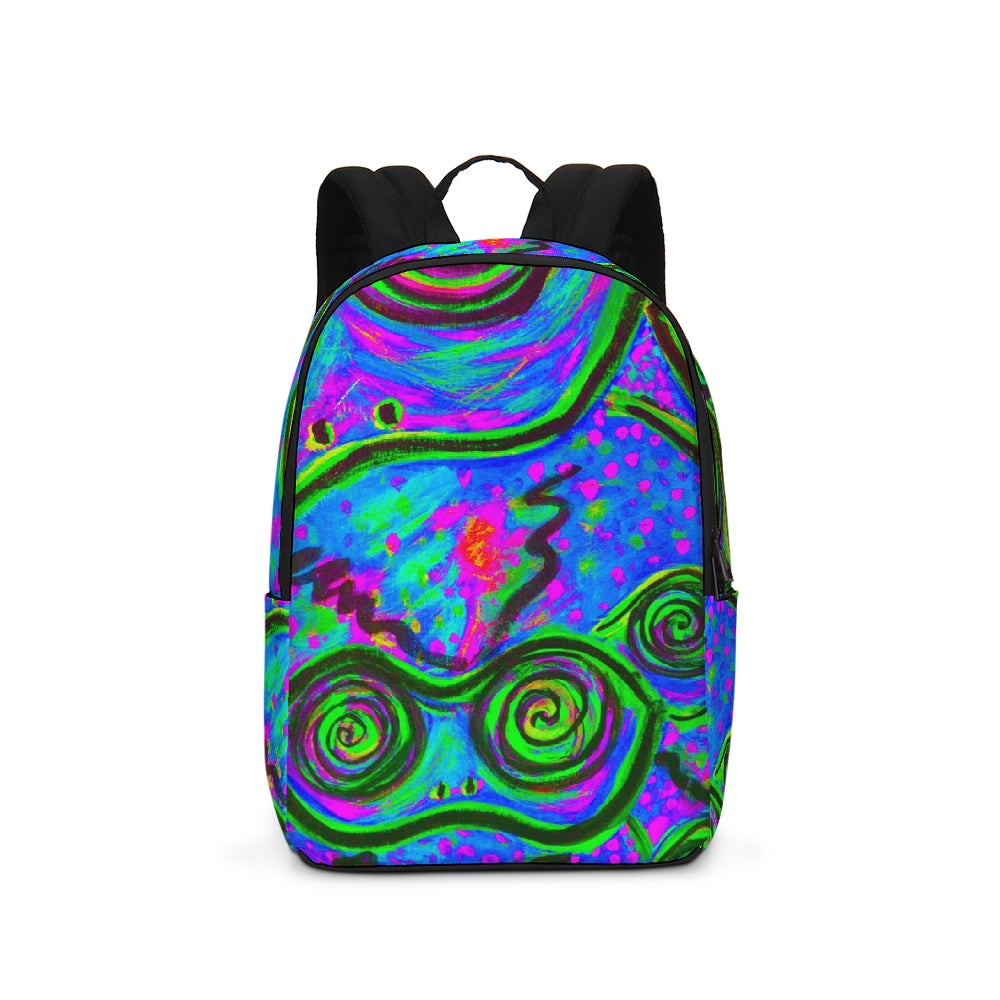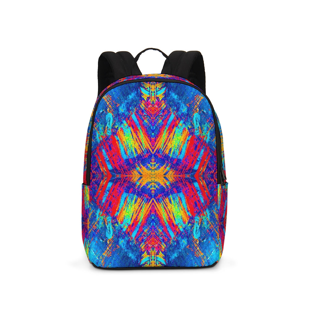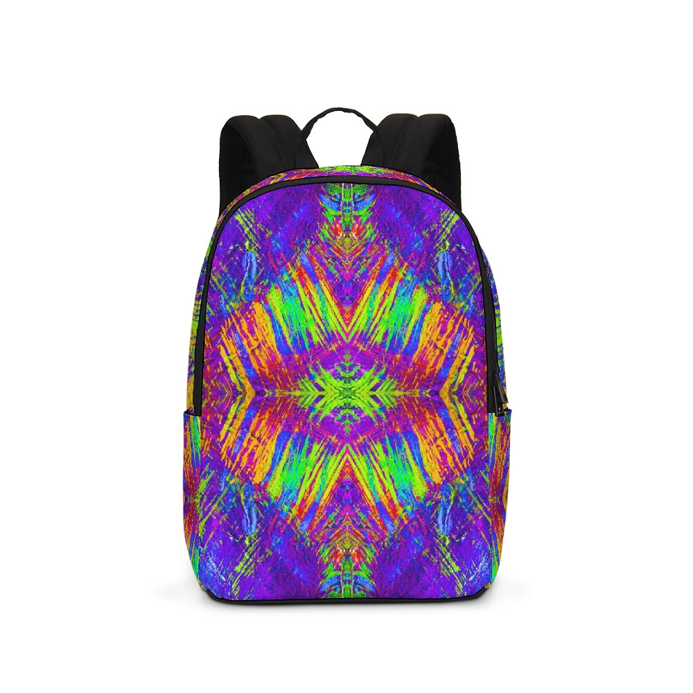 A Fridge Art Boutique Large Backpack can fit just about anything you need! With two zip pockets, a small slip pocket, a laptop sleeve, and two exterior side pockets there's plenty of space for your items. Use the interior small slip pocket to organize your smaller items, with plenty of space for a 16" laptop and more. A great item for back to school, hiking, or traveling! Style up with exciting designs by Artist Le'Kenne.