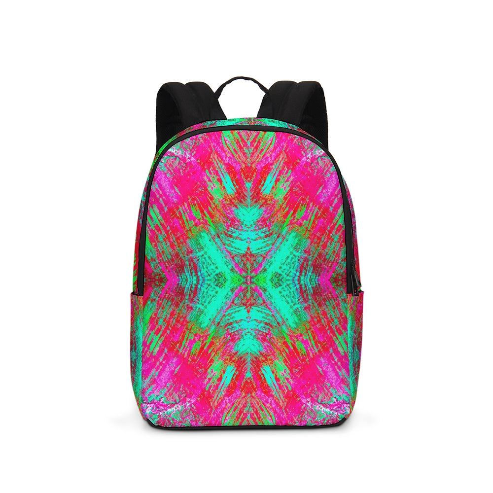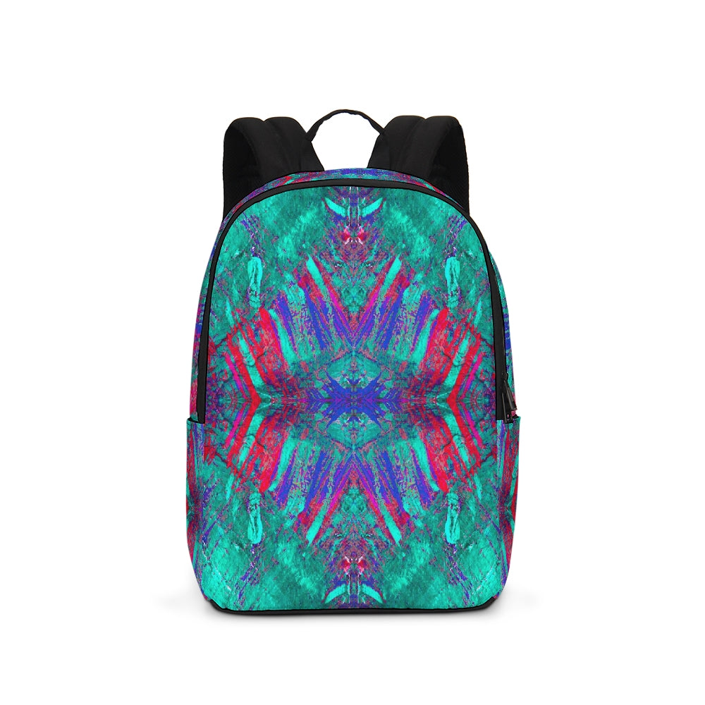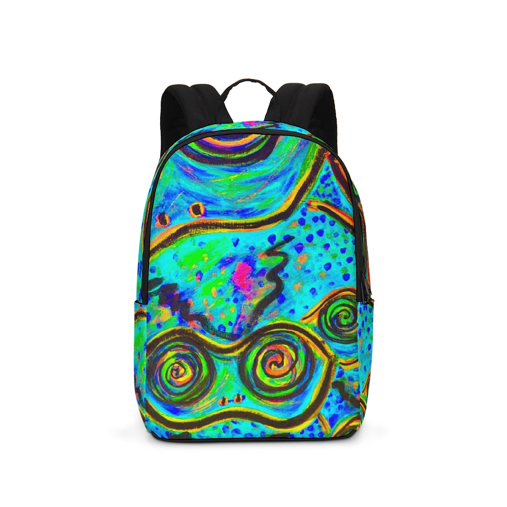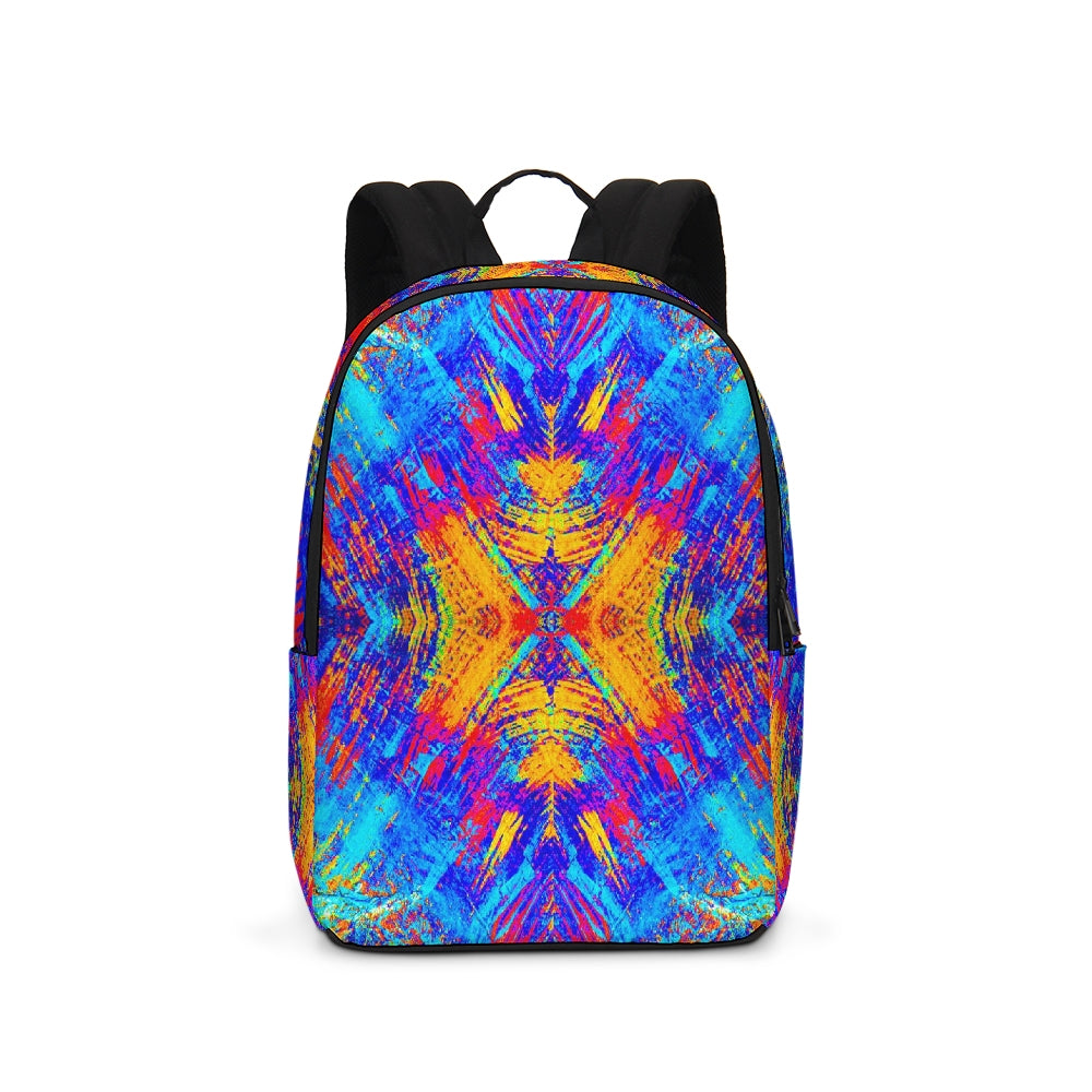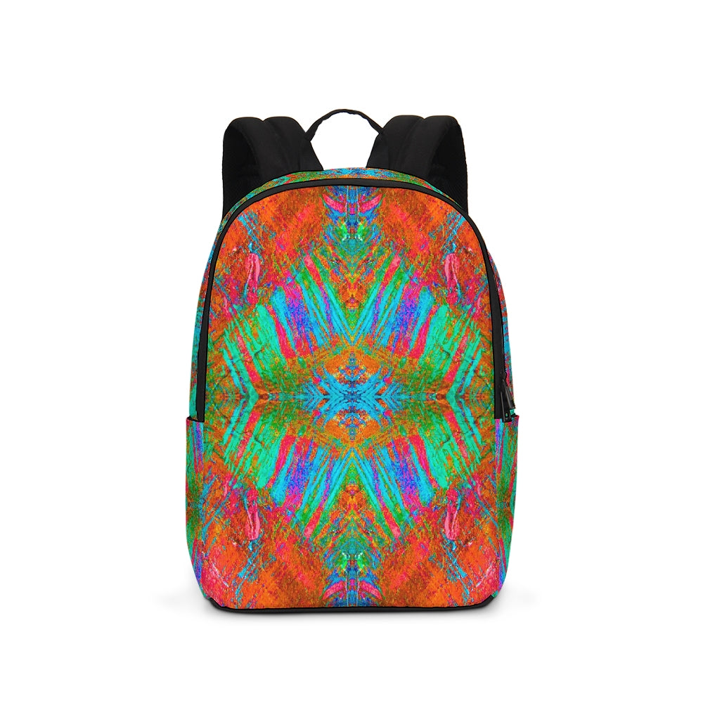 A Fridge Art Boutique Large Backpack can fit just about anything you need! With two zip pockets, a small slip pocket, a laptop sleeve, and two exterior side pockets there's plenty of space for your items. Use the interior small slip pocket to organize your smaller items, with plenty of space for a 16" laptop and more. A great item for back to school, hiking, or traveling! Style up with exciting designs by Artist Le'Kenne.