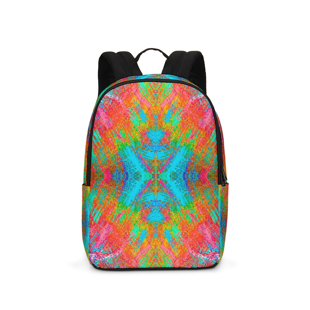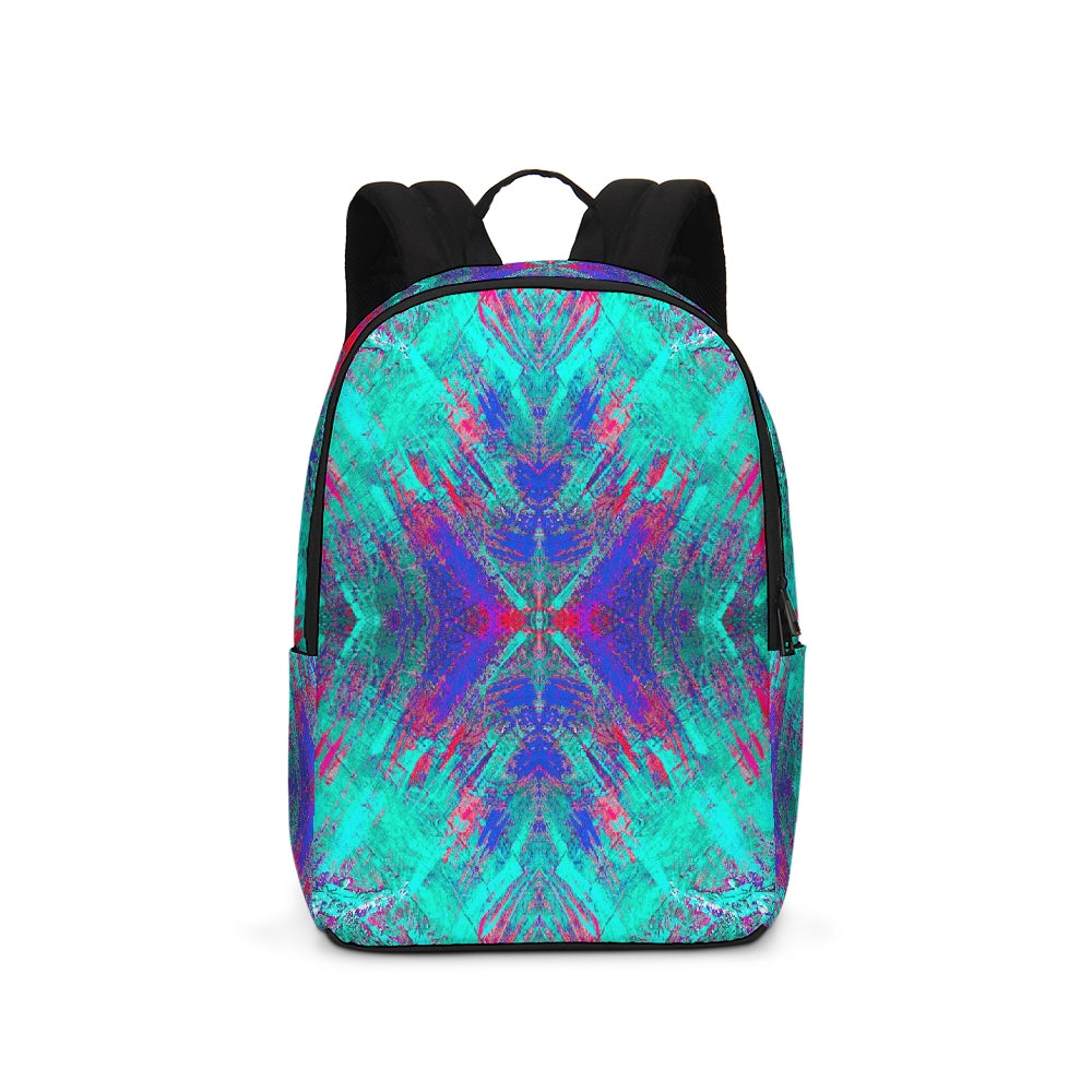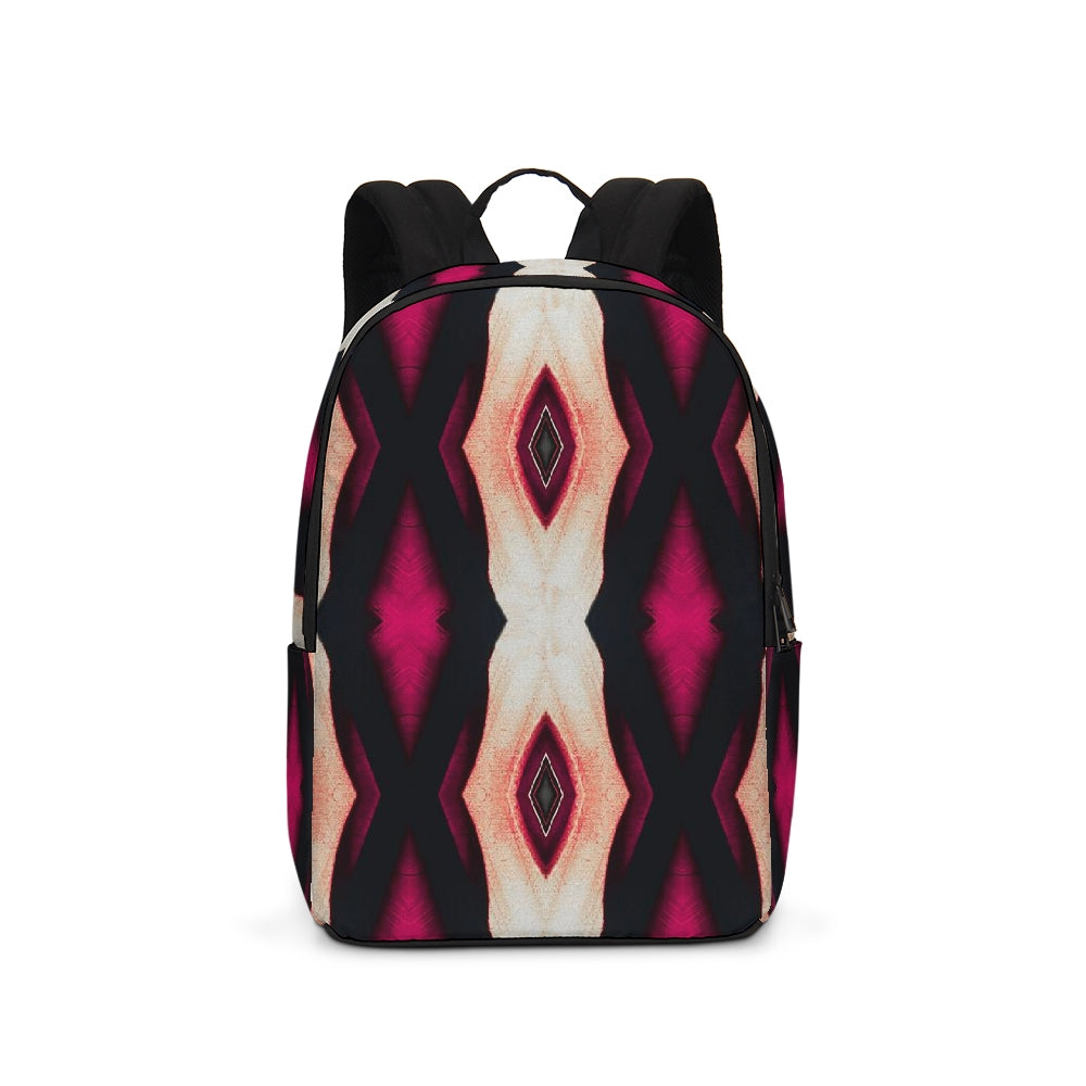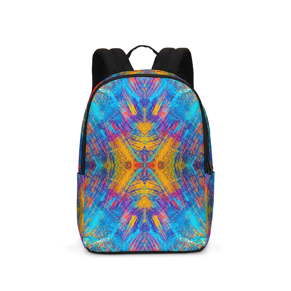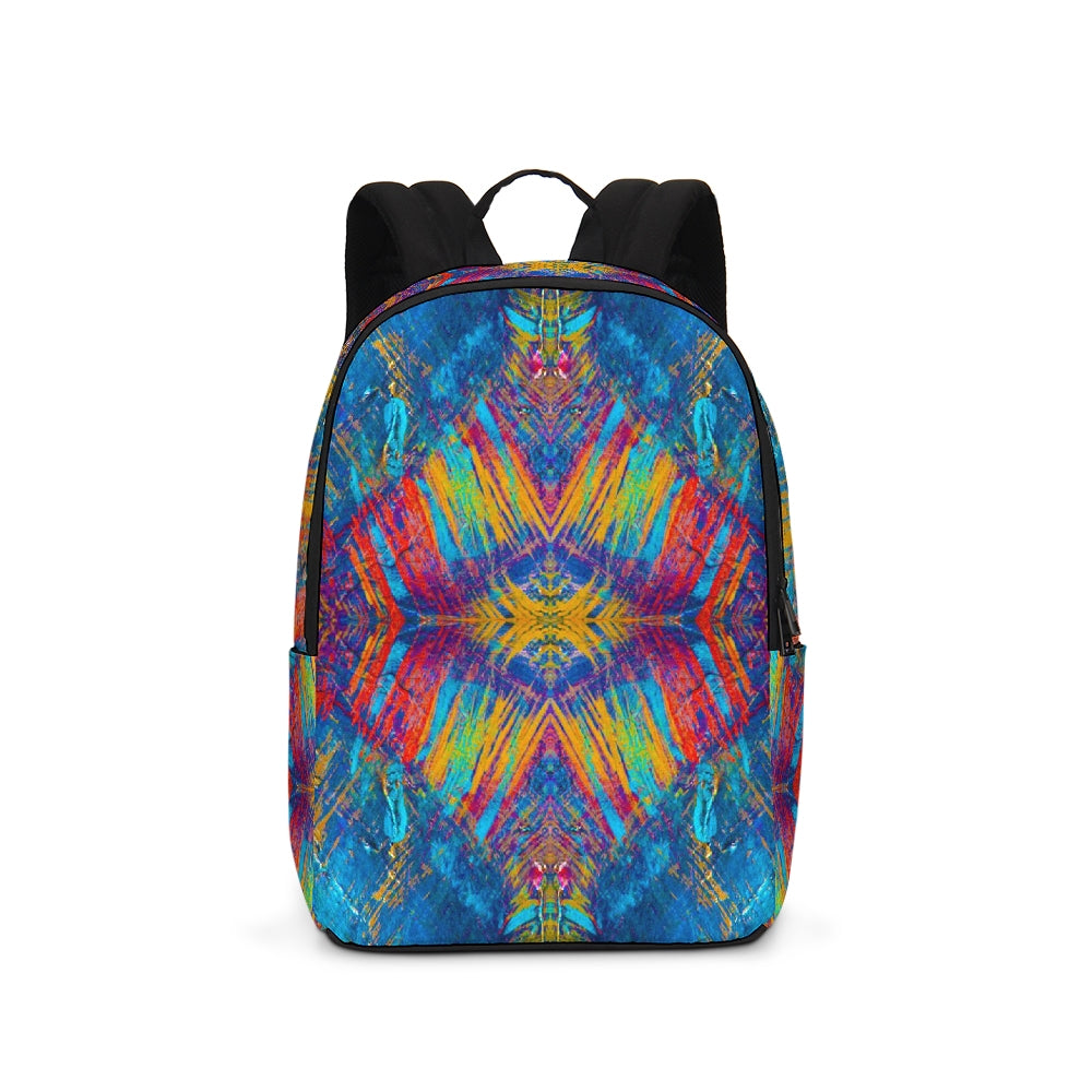 A Fridge Art Boutique Large Backpack can fit just about anything you need! With two zip pockets, a small slip pocket, a laptop sleeve, and two exterior side pockets there's plenty of space for your items. Use the interior small slip pocket to organize your smaller items, with plenty of space for a 16" laptop and more. A great item for back to school, hiking, or traveling! Style up with exciting designs by Artist Le'Kenne.