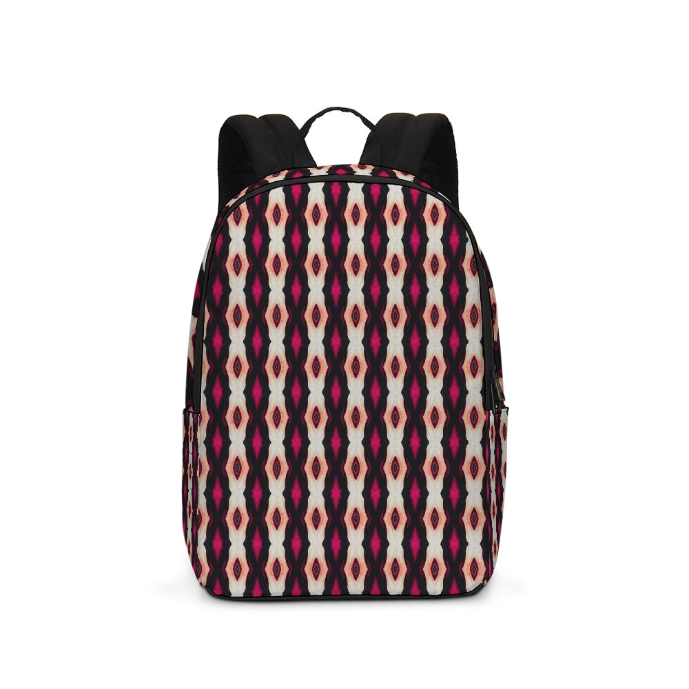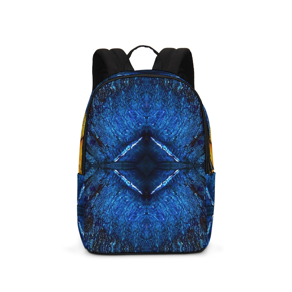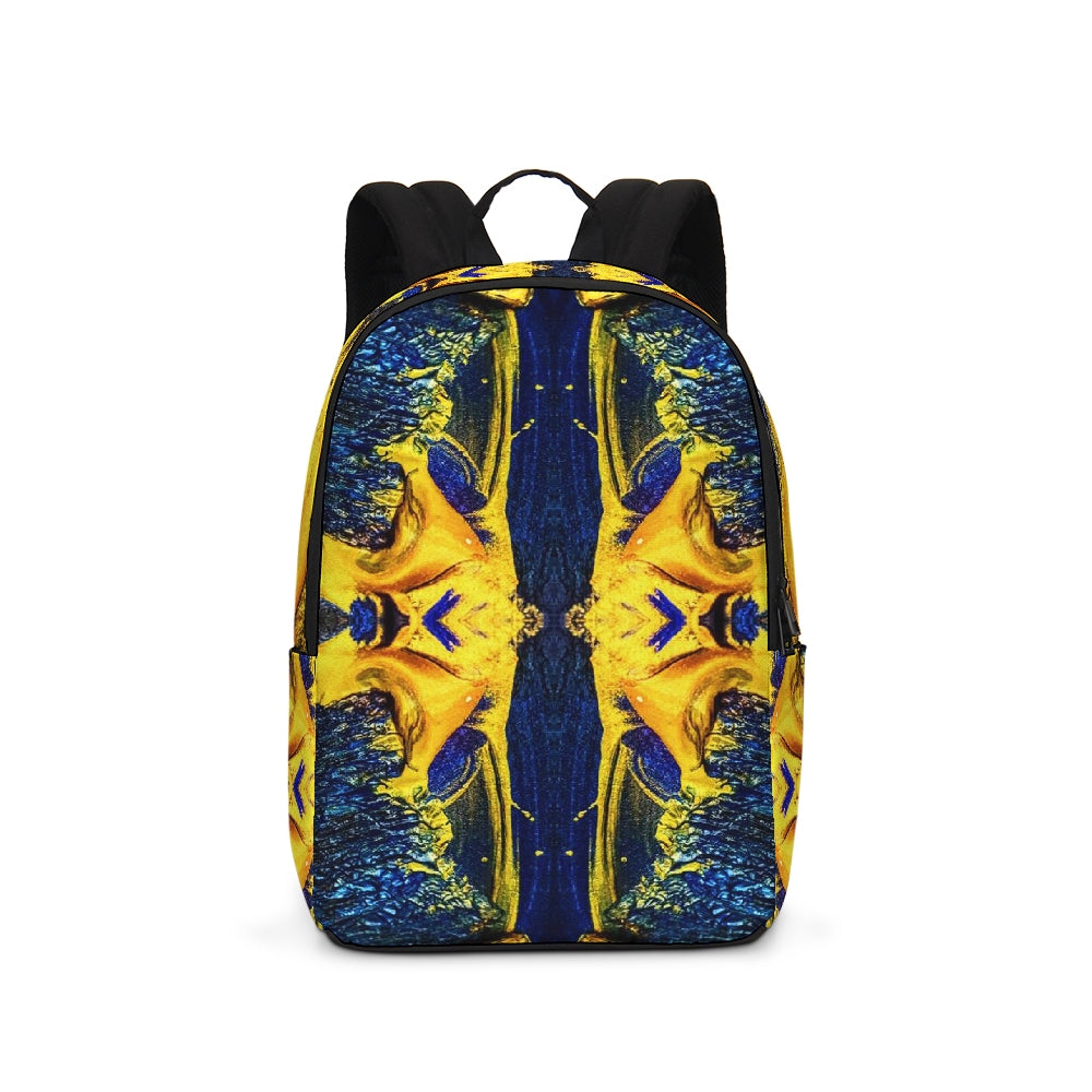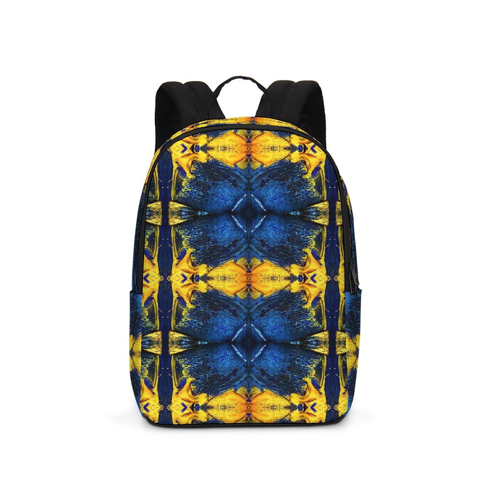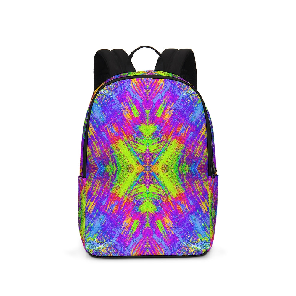 A Fridge Art Boutique Large Backpack can fit just about anything you need! With two zip pockets, a small slip pocket, a laptop sleeve, and two exterior side pockets there's plenty of space for your items. Use the interior small slip pocket to organize your smaller items, with plenty of space for a 16" laptop and more. A great item for back to school, hiking, or traveling! Style up with exciting designs by Artist Le'Kenne.
