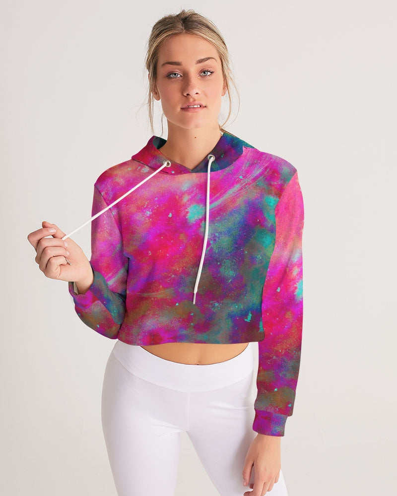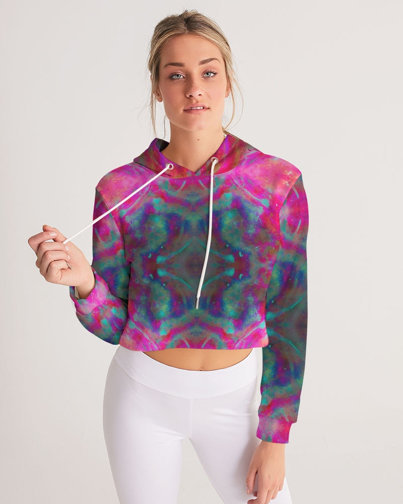 Two Wishes Green Nebula Cosmos Women's Cropped Hoodie
