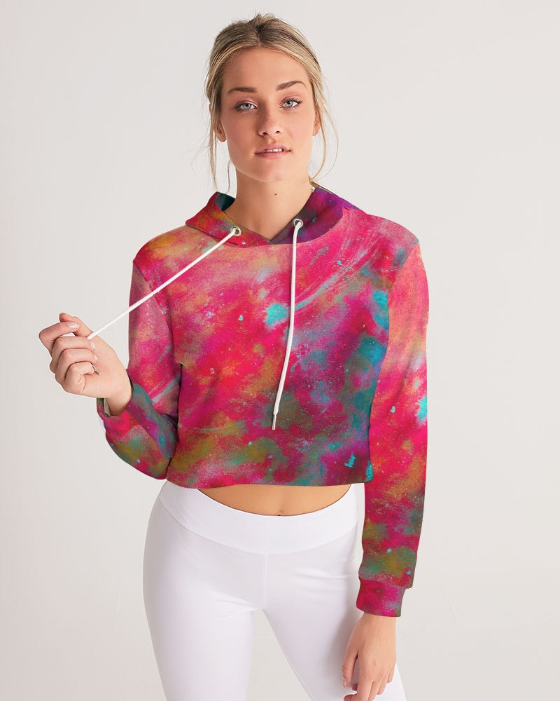 Two Wishes Pink Starburst Cosmos Women's Cropped Hoodie