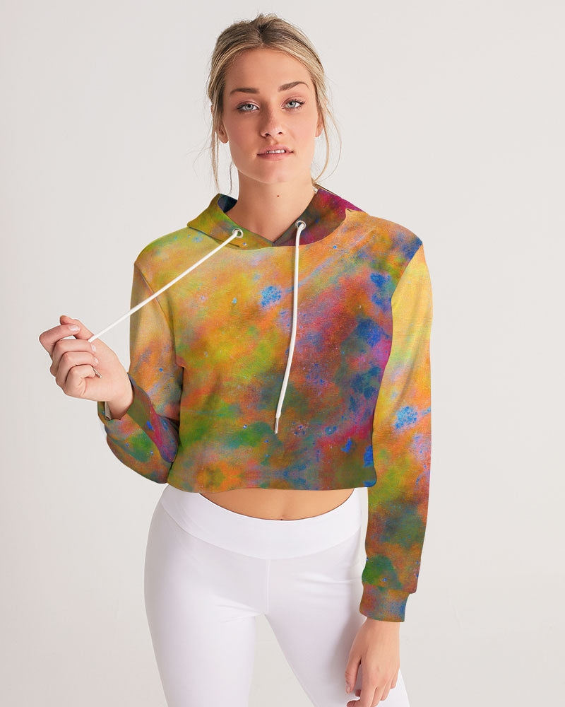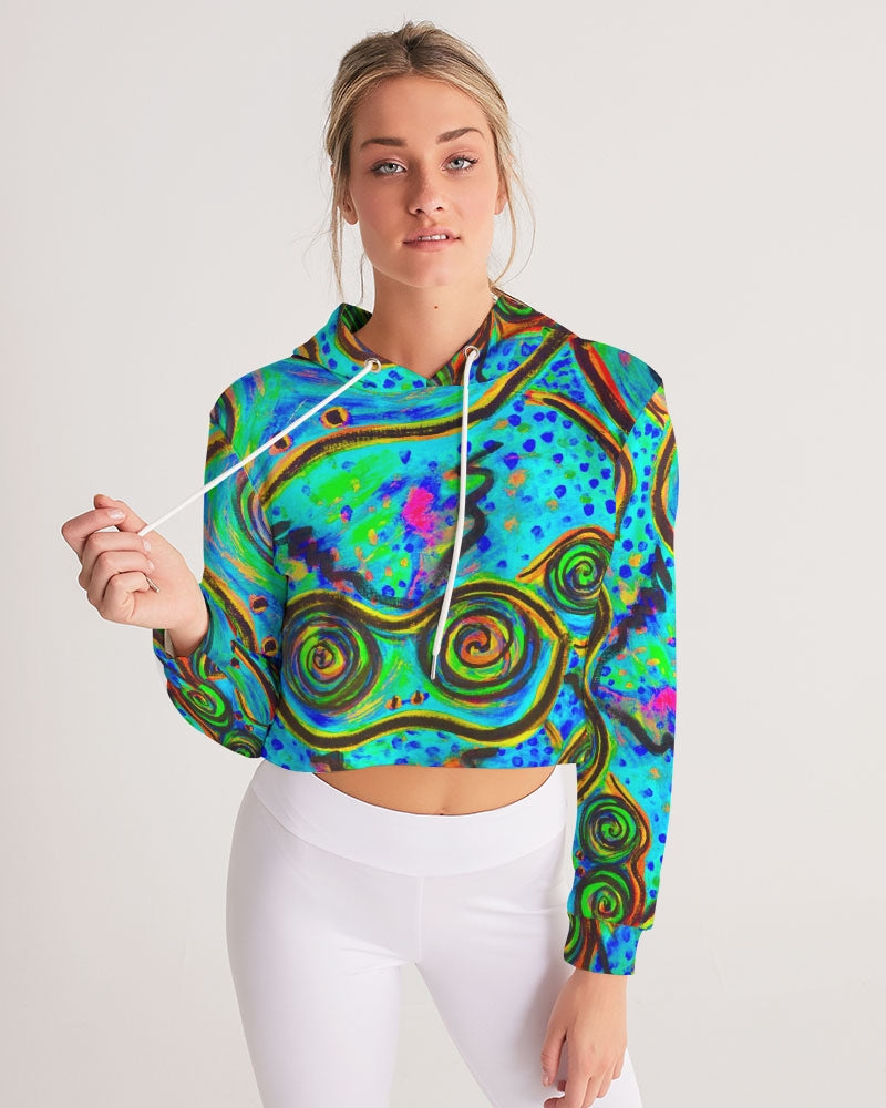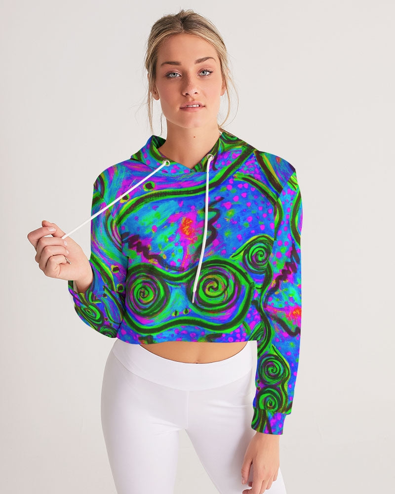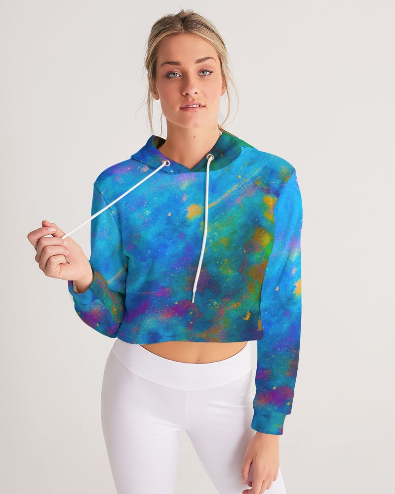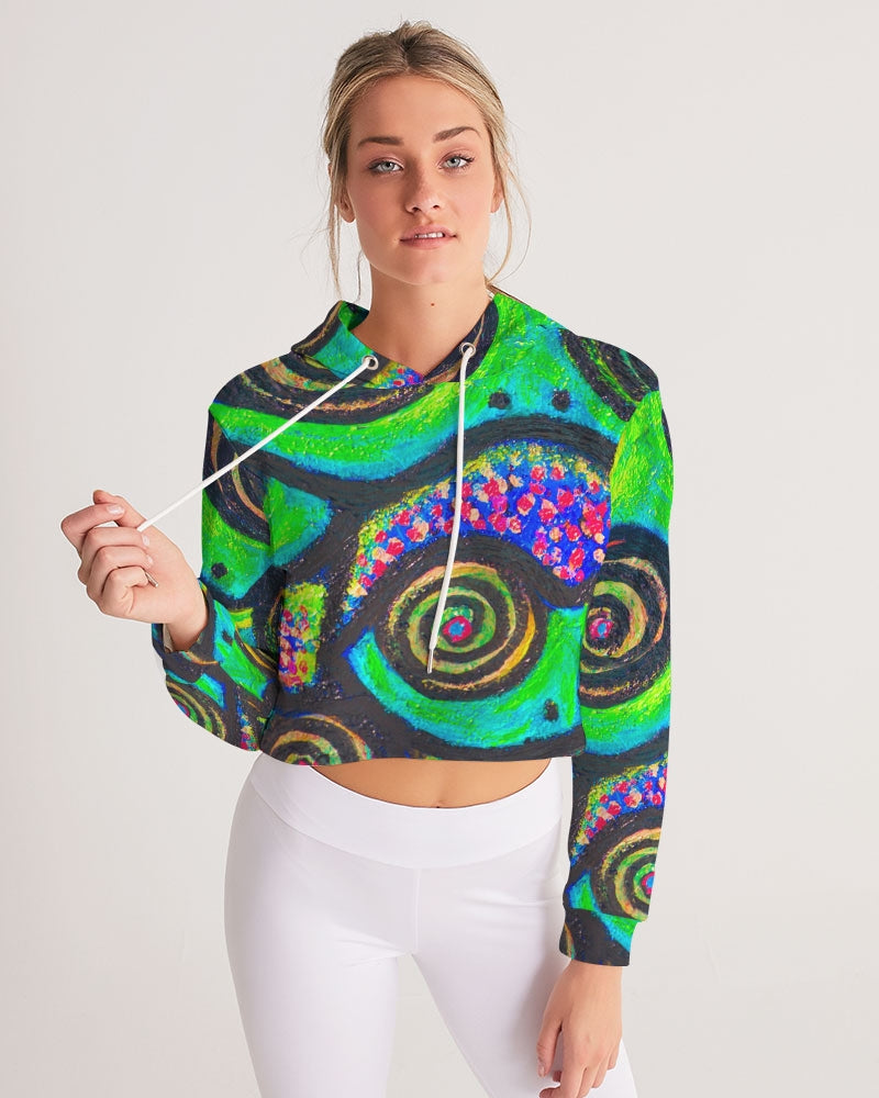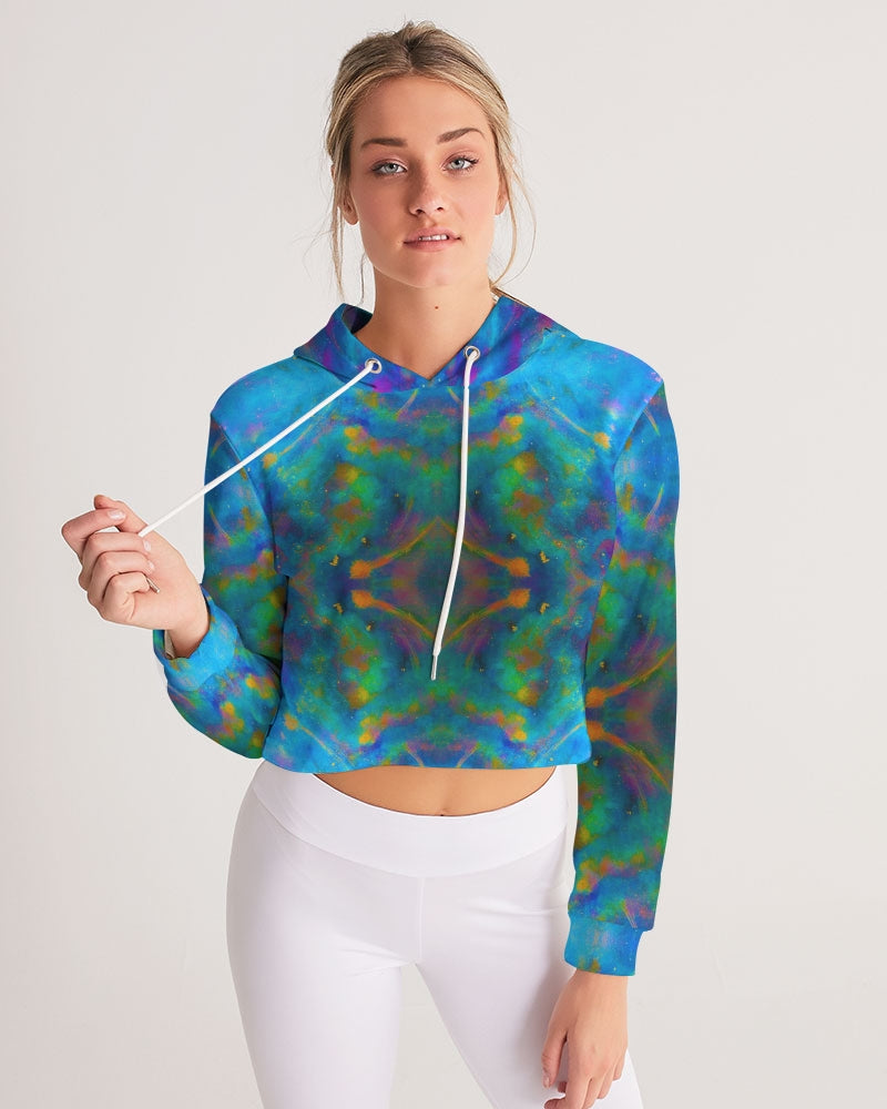 Two Wishes Green Nebula Women's Cropped Hoodie