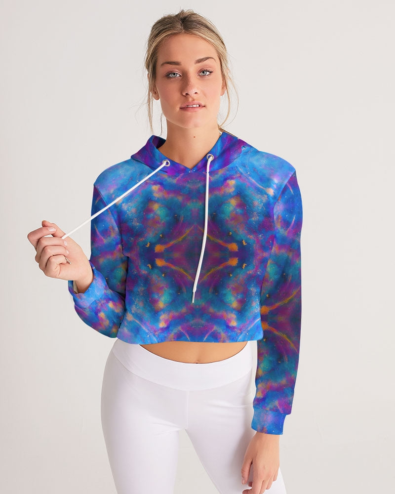 Two Wishes Sunburst Cosmos Women's Cropped Hoodie