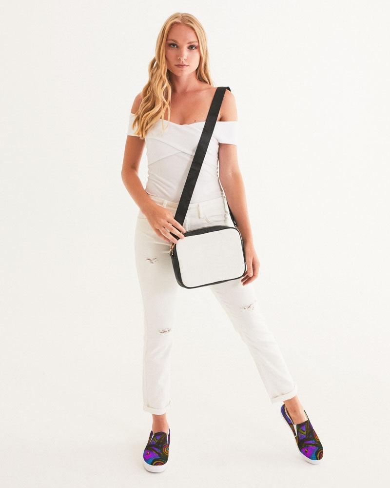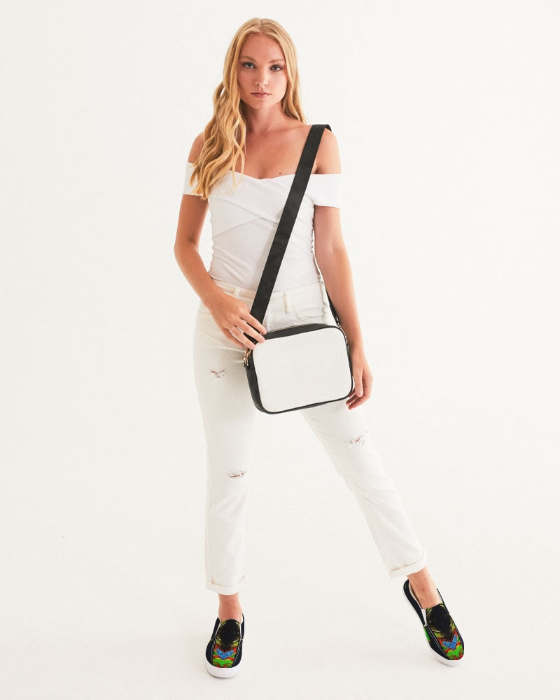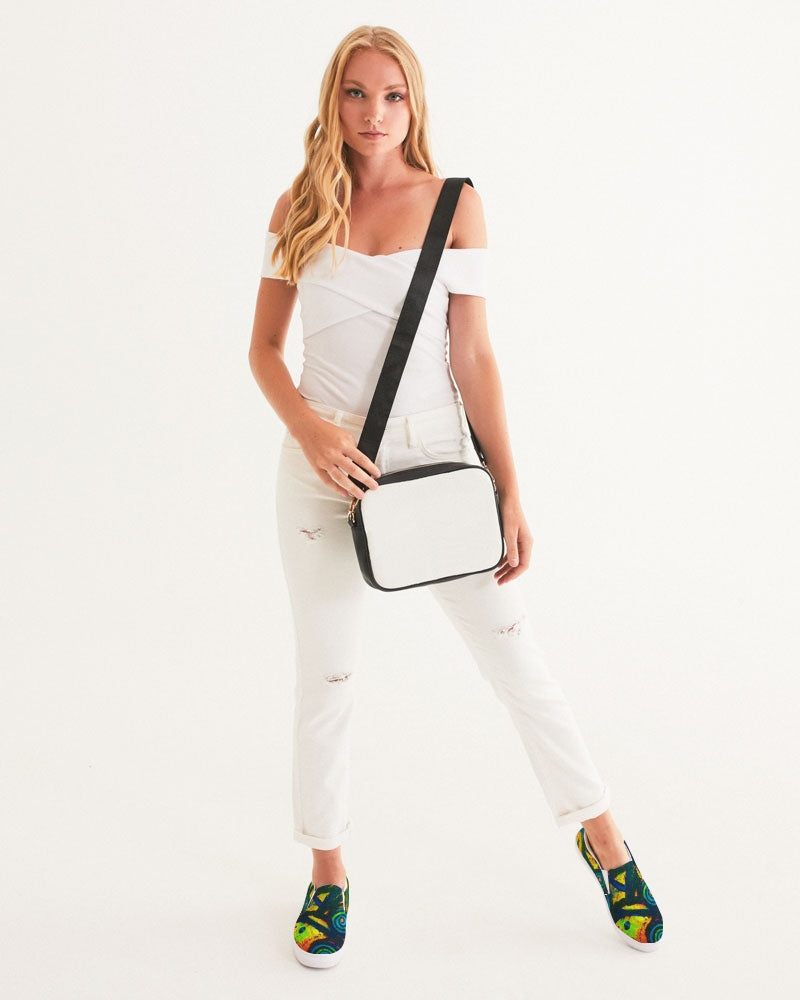 Fridge Art Boutique Women’s Slip-On Canvas shoes embrace a unique combination of fashion and function. Each loafer features a breathable lining and soft insole with elastic side accents. If you are a fan of Vans these comfortable slip-on canvas shoes are the perfect match for your feet! Stylish and bespoke, these comfy kicks encompass both artistic flair and wearability. Shop wearable art today and accessorize your soles with designs by Artist Le’Kenne!