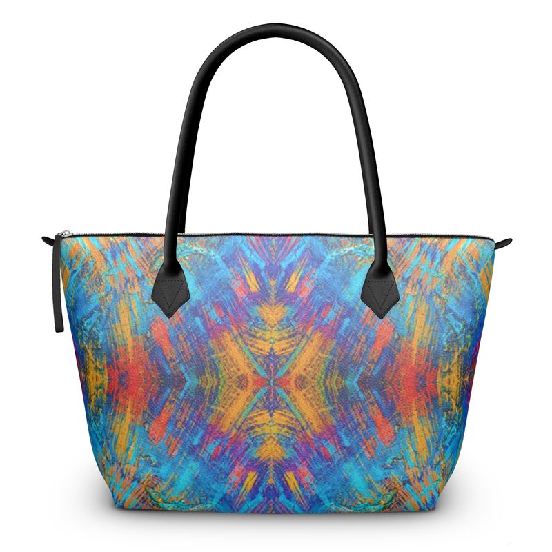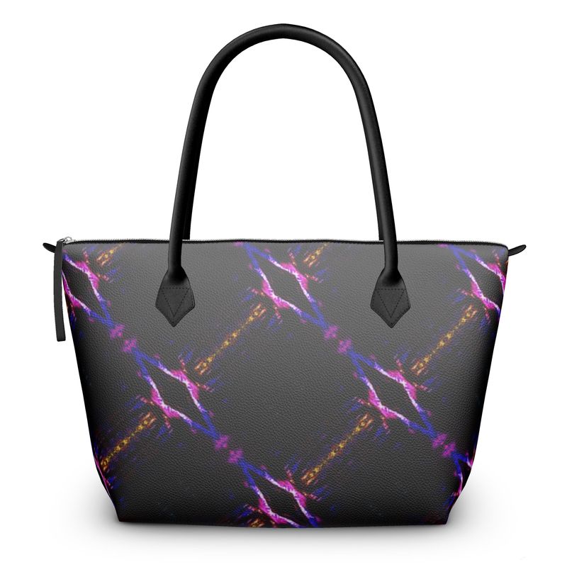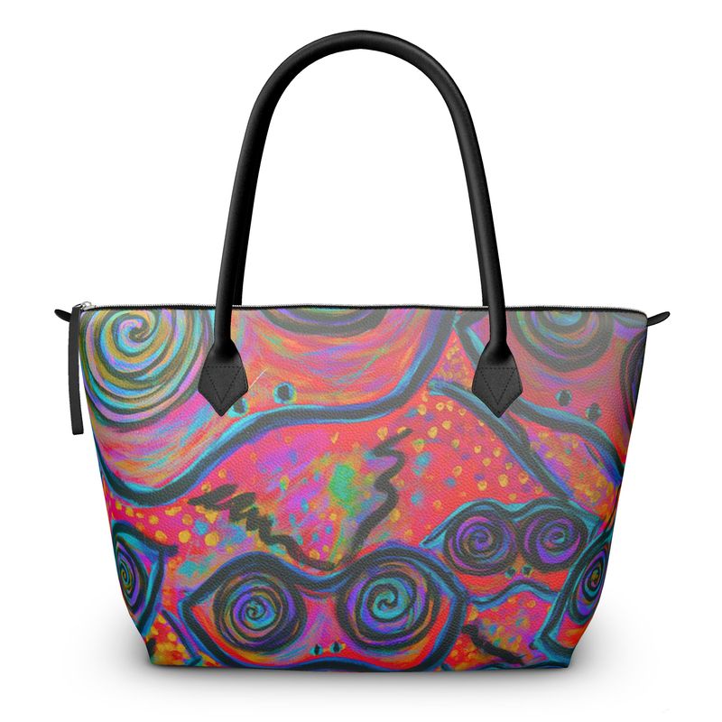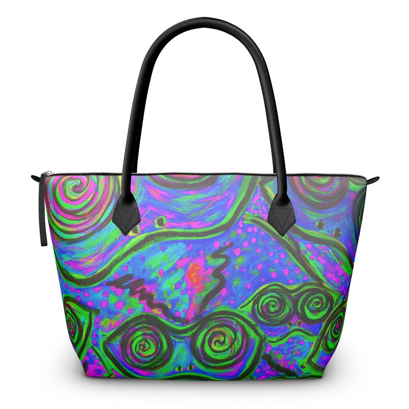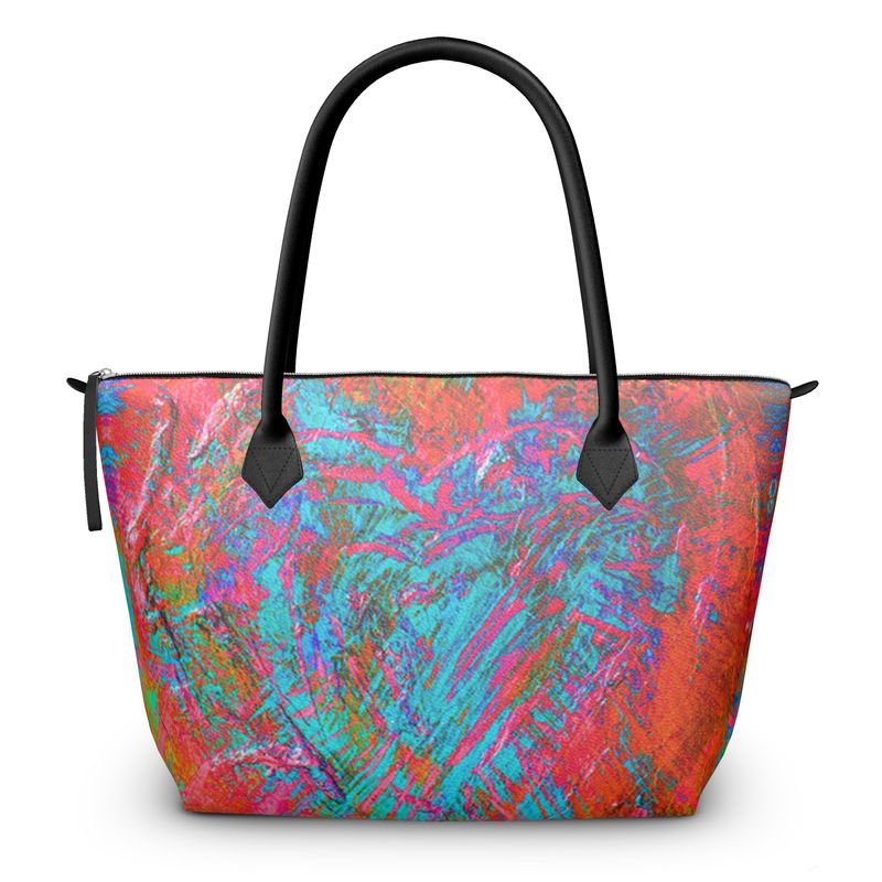 Perfect for a stylish on the go with plenty of space for essentials and more, the Fridge Art Boutique Luxury Zip Top Handbags are an easy grab-and-go accessory! All Luxury Zip Top Handbags are handmade in the UK with your choice of Monroe Satin Matte Material, Smooth Nappa Leather, or Textured Nappa Leather. All of the Zip Top Handbags are displayed in Textured Nappa Leather and feature leather handles with three internal pockets for convenience and measure 18.5" x 12.2" x 5.7". Take your FAB BAG anywhere you go! All designs are bespoke by Artist and Designer Le’Kenne. Shop Happy designs today!