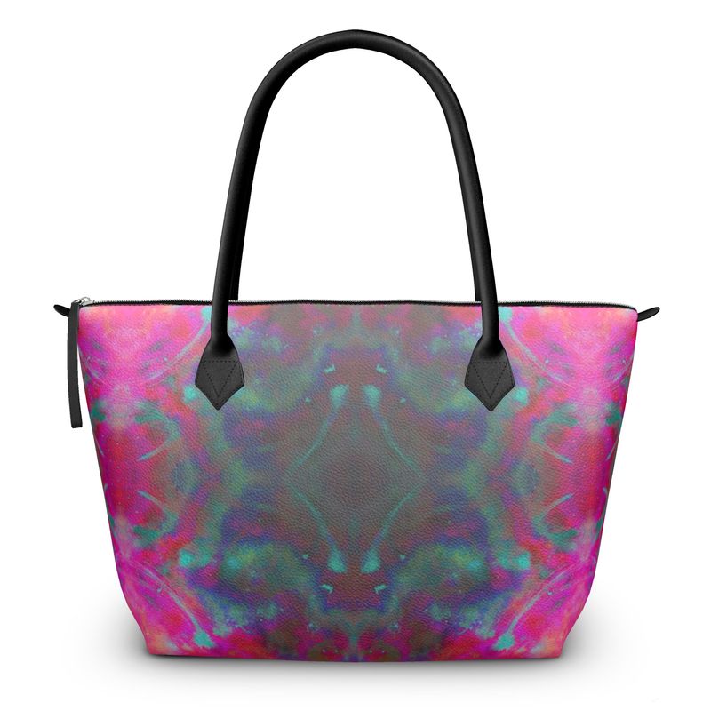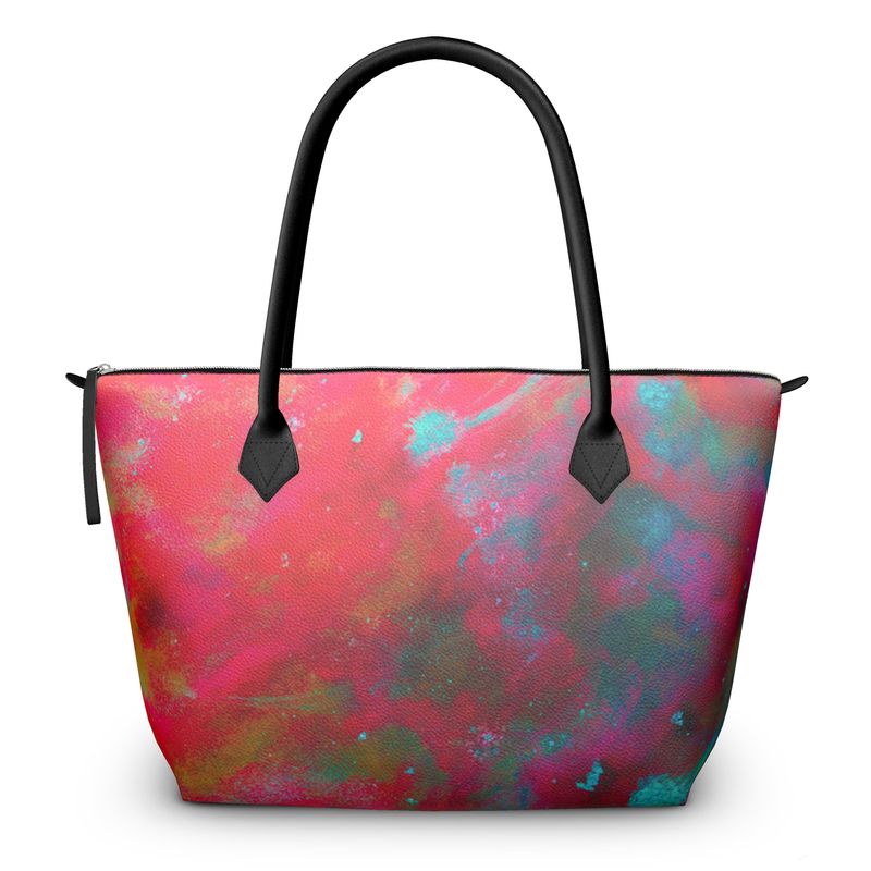 Perfect for a stylish on the go with plenty of space for essentials and more, the Fridge Art Boutique Luxury Zip Top Handbags are an easy grab-and-go accessory! All Luxury Zip Top Handbags are handmade in the UK with your choice of Monroe Satin Matte Material, Smooth Nappa Leather, or Textured Nappa Leather. All of the Zip Top Handbags are displayed in Textured Nappa Leather and feature leather handles with three internal pockets for convenience and measure 18.5" x 12.2" x 5.7". Take your FAB BAG anywhere you go! All designs are bespoke by Artist and Designer Le’Kenne. Shop Happy designs today!